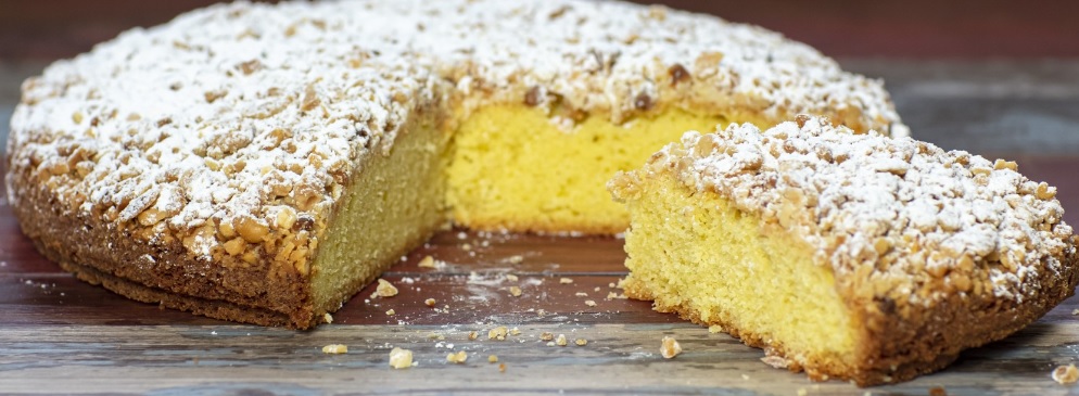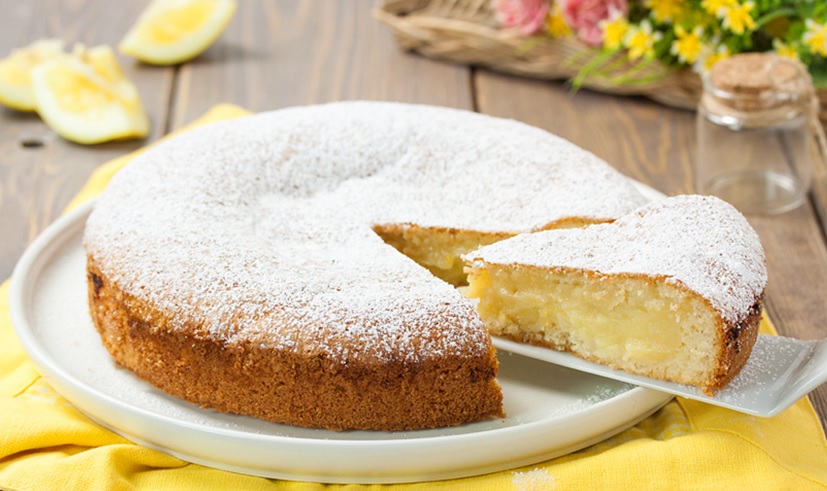 Ingredienti: 200gr farina 00, 60gr farina di mandorle, 2 uova, 150gr zucchero, 70ml latte intero, 100ml olio di arachidi, scorza di 1 limone grattugiato, 1 bustina di lievito per dolci Per la crema 2 uova, 60gr burro, 170gr zucchero, 80ml succo di limone, 1 cucchiaio di amido di mais, succo di due limoni