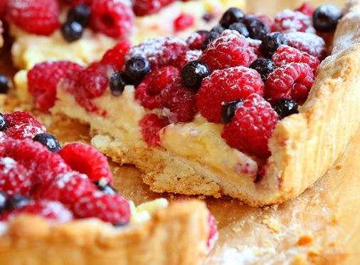 Ingredienti: 300gr farina 00, 1 uovo, 150gr zucchero semolato, 110gr burro freddo, 1/2 bustina lievito per dolci, 1 bacca di vaniglia, 1 pizzico di sale. Per la farcitura 250gr ciliegie. Per la decorazione zucchero a velo q.b. Per la crema pasticcera 1lt latte intero, 8 tuorli, 200gr zucchero semolato, 50gr farina 00, scorza di limone, 1 bacca di vaniglia