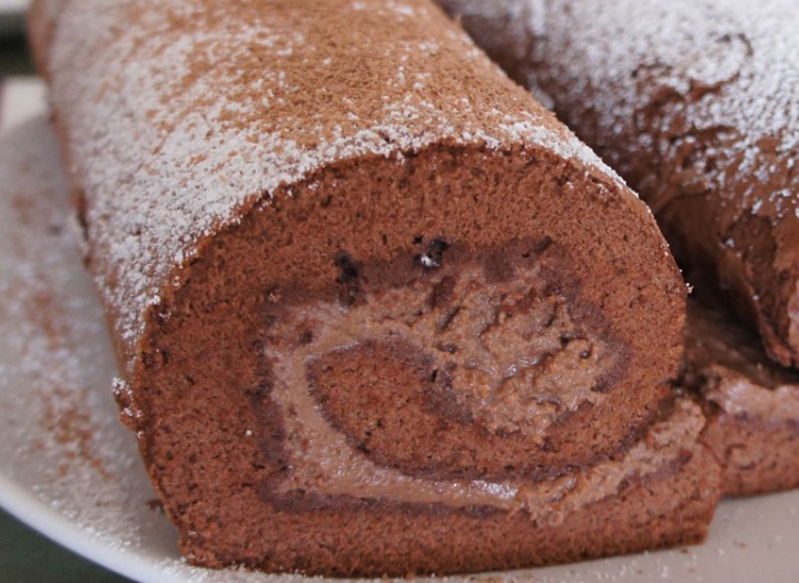 Ingredienti: Per il pan di spagna al cacao 5 uova, 175gr farina 00, 150gr zucchero semolato, 1 bacca di vaniglia, 40gr cacao amaro in polvere. Per la bagna 1 bicchiere di latte intero. Per la farcitura 500ml panna da montare