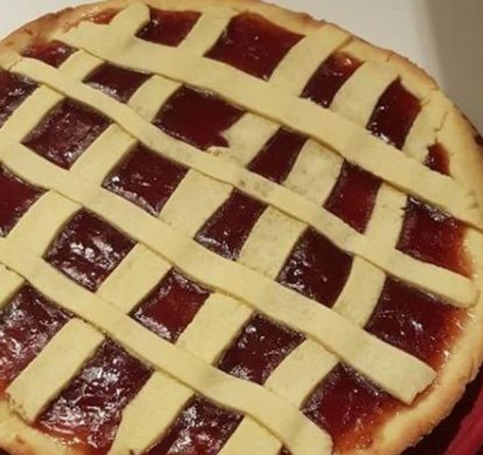 La mia sbriciolata con crema pasticcera e ciliegie