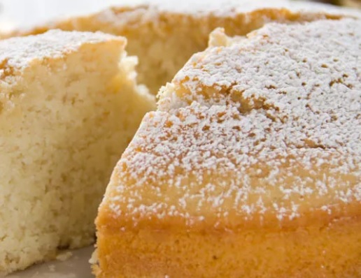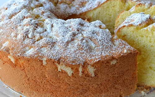 Ingredienti: 180gr zucchero, 150gr farina 00, 150gr fecola di patate, 130ml latte intero, 90gr burro, 1 bustina lievito per dolci, 5 uova, scorza grattugiata di 1 limone, 1 pizzico di sale, zucchero a velo q.b.