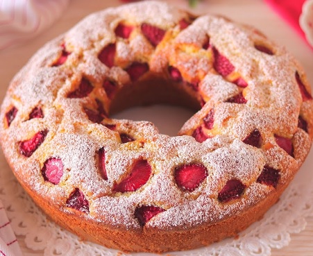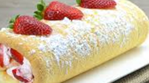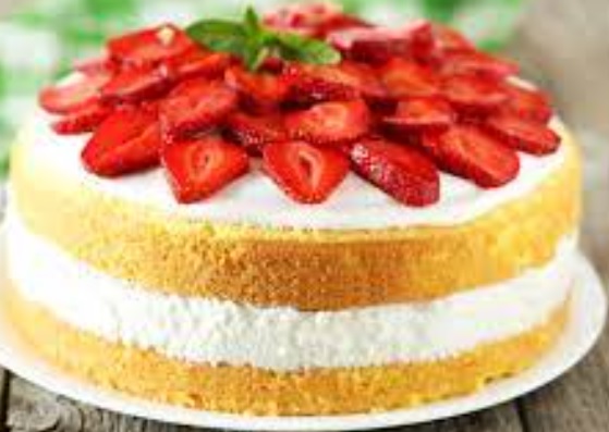 Ingredienti: Per il biscotto 4 uova, 1 pizzico di sale, 100gr farina, 120gr zucchero, 1 cucchiaio di miele. Per la farcitura 500gr fragole già pulite, 300ml panna da montare. Per la decorazione zucchero a velo q.b.