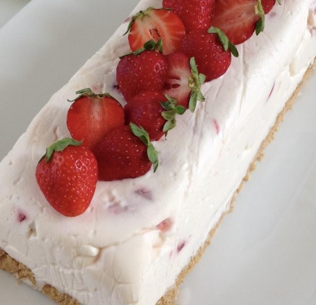 Il mio cheesecake al cioccolato bianco e mousse di fragola