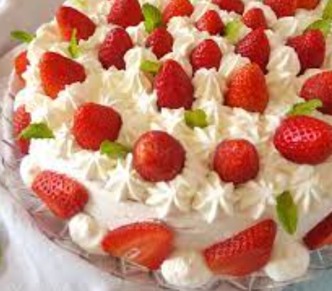 Ingredienti: Per il pan di spagna 180gr zucchero, 150gr farina, 30gr fecola di patate, 4 uova, 1 bustina di lievito per dolci. Per la farcitura 1kg fragole già pulite, 700ml panna per dolci da montare. Per la bagna liquido delle fragole, zucchero q.b. Per la decorazione foglioline di menta fresca
