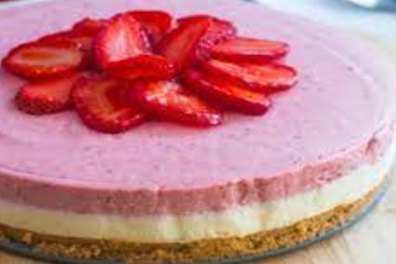 Ingredienti: Per la base 200gr biscotti secchi, 150gr burro. Per la mousse al cioccolato bianco 200gr cioccolato bianco, 1 foglio di gelatina, 200ml panna da montare. Per la mousse alla fragola 2 fogli di gelatina, 50gr zucchero, 200ml panna da montare, 350gr fragole