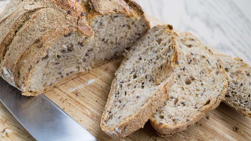 Ingredienti: 550gr acqua temperatura ambiente, 500gr farina ai cereali, 300gr farina di semola, 5gr lievito di birra, 1 cucchiaino di miele, 1 cucchiaino di sale fino, 20gr olio evo