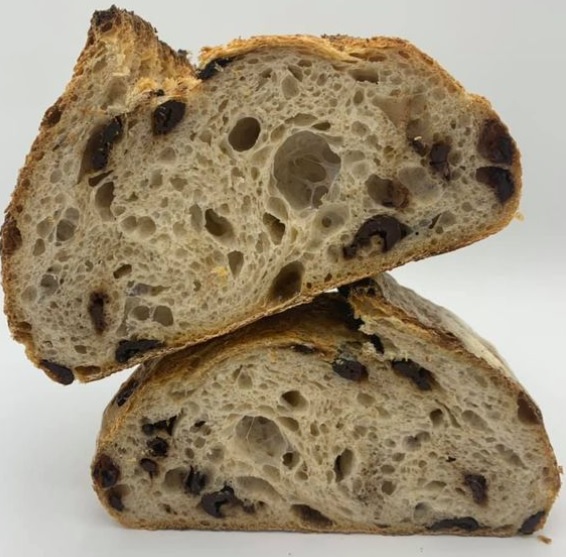 Ingredienti: 600gr farina tipo 2, 2 cucchiaini di sale, 350gr acqua, 15gr di lievito di birra, 1/2 cucchiaino di zucchero, 70gr olive nere denocciolate