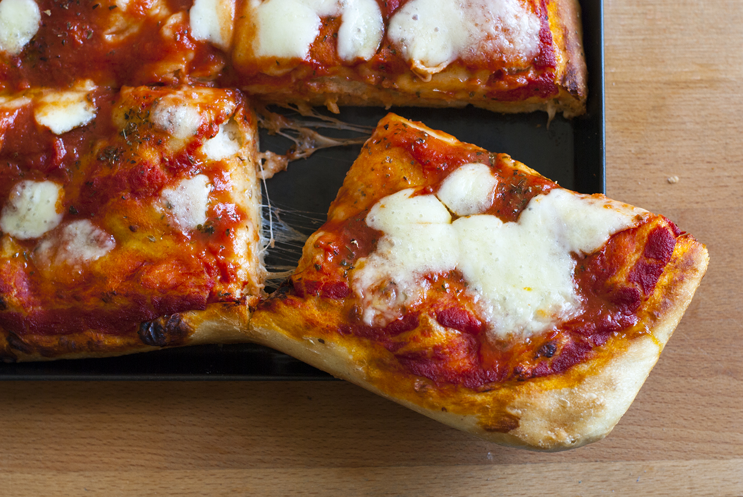 La mia pizza senza impasto in teglia