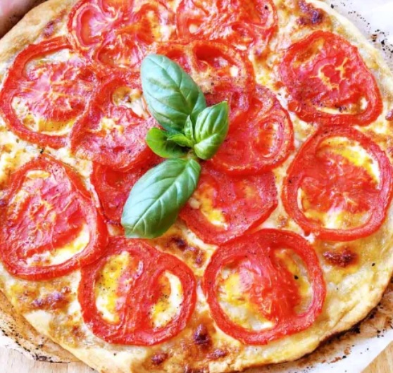 In una terrina farina, acqua frizzante, olio, sale ed impastare finche non risulta un composto liscio ed omogeneo. Mettere nella terrina con farina alla base e ricoperta da pellicola trasparente a riposare per 30 minuti. Stendere la pasta matta con il mattarello allo spessore di mezzo centimetro e metterlo dentro una teglia rotonda foderata di carta forno e oleata alzando i bordi. Bucherellare la base con la forchetta. Spalmare bene lo stracchino. Tagliare a fette i pomodori e metterli a giro sopra lo stracchino. Sale, pepe, bel giro d' olio evo ed infornare a 180° per 45 minuti. Decorare con foglie di basilico fresco.